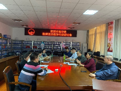 党委书记李蕖、教学副院长方淑红、环境科学教研室主任杨迎春和环境科学专业全体老师及教师党员,会议分为两部分: