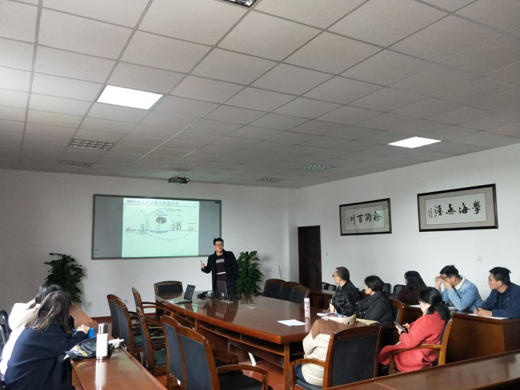 部分教师及研究生在彩经楼221会议室参加了第十五期学术沙龙,本次沙龙报告人为赵淼老师,报告题目为NHx在农田土壤—大气—水界面迁移过程与通量及阻控措施。