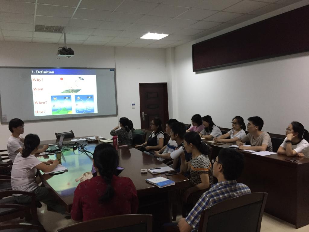 即将开展的研究工作奠定了良好的基础。报告结束后,到会的老师及同学对于大气校正模型中有关气溶胶影响贡献分离、模型实测数据验证及模型区域适用性等问题进行了深入的交流和探讨。