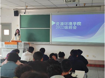 22级辅导员江慧老师在H1206教室召集22级各班同学召开班会。