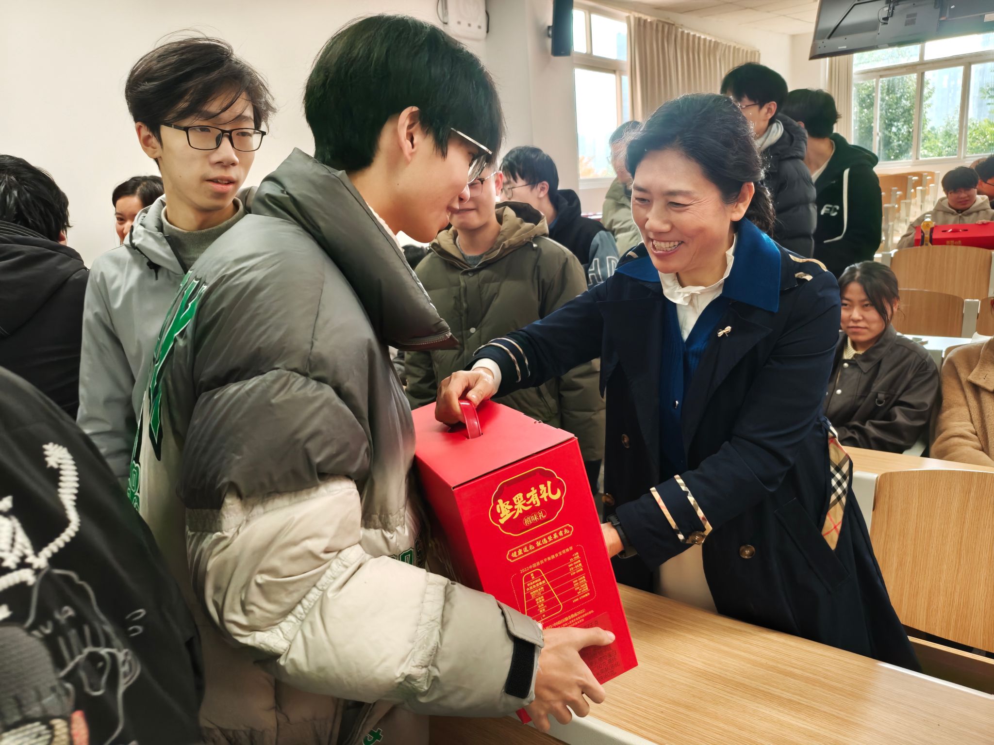 本次活动准备的礼物是一份寓意 “厚积能量 稳握胜果” 的特制坚果礼盒,搭配写有 “今日深耕不辍 明朝捷报频传”“厚积今朝力 薄发明日功” 等励志寄语的卡片。这份以 “暖” 为底色、以 “励” 为内核的礼物,既是对同学们备考期间补充精力的贴心关怀,也是对大家未来的美好期许。同学们直言,这份带着温度的祝福,让备考的紧张氛围里多了几分暖意,冲刺的信心也更足了。